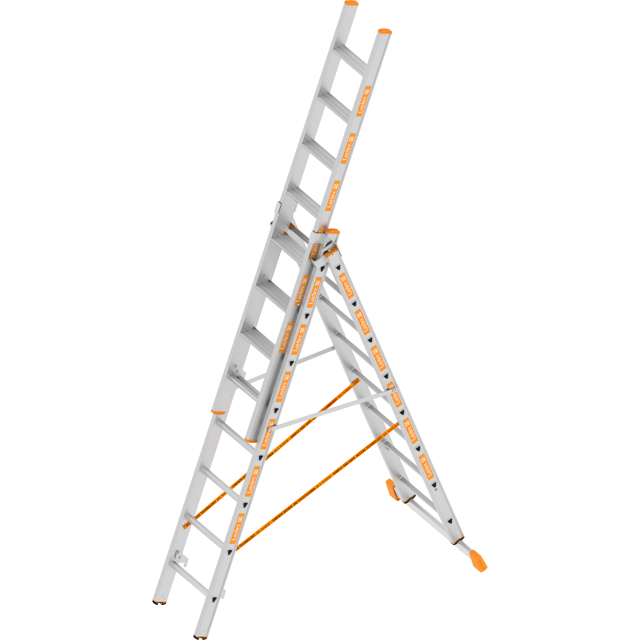 Wahlweise als Schiebeleiter, Anlegeleiter, Stehleiter oder verlängerbare Stehleiter – alles möglich durch Spezialgelenke