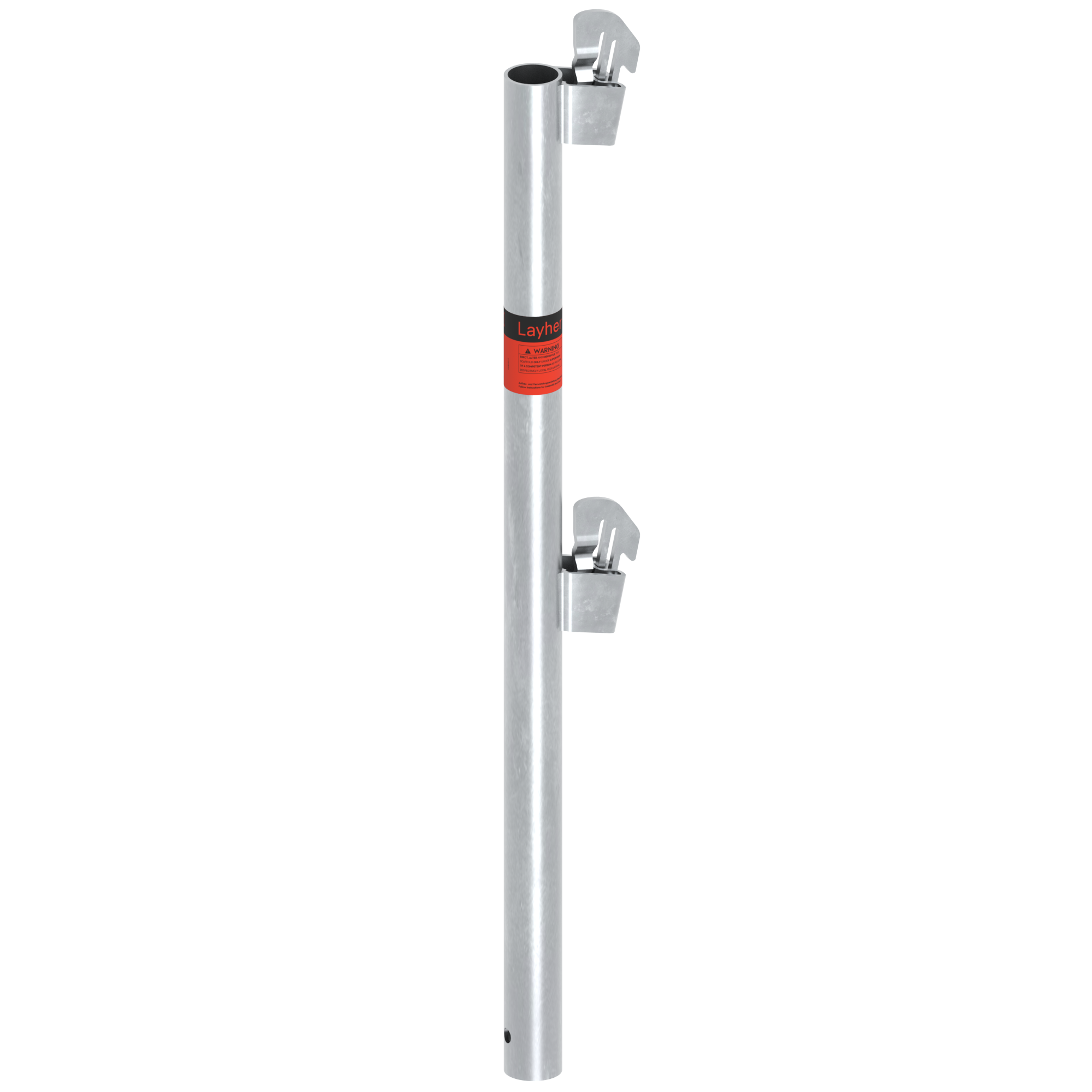 Der Layher Geländerstiel ist die logische Ergänzung der Brüstungsklammer zur Absturzsicherung, Mit einer Höhe von 0,9 m erfüllt er die Anforderungen bei der Absicherung an Betondecken bzw. Attikas, wenn Geländer montiert werden. Nicht geeignet zur Geländeraufnahme in der obersten Gerüstlage auf Stellrahmen.