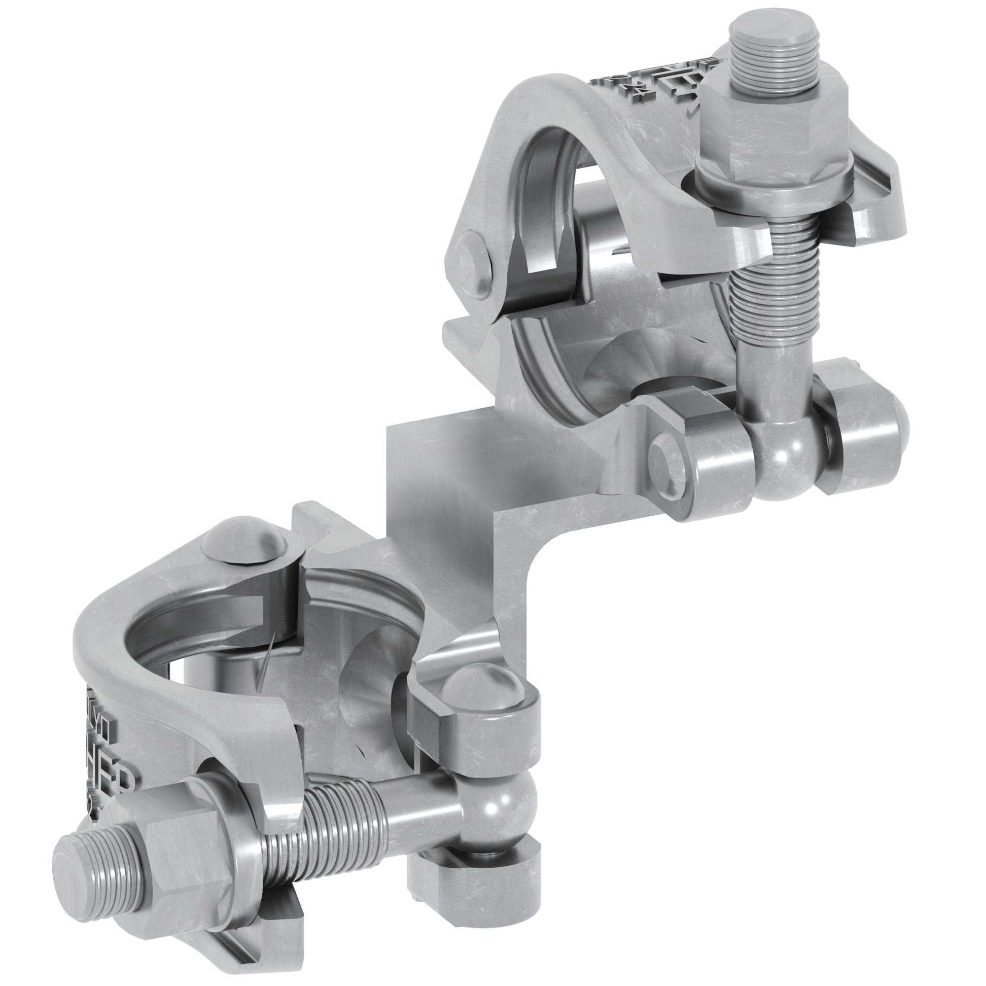 Mit Gitterträgerkupplungen wird der Layher Blitz Gitterträger am Untergurt mit dem Ständerrohr verbunden.
