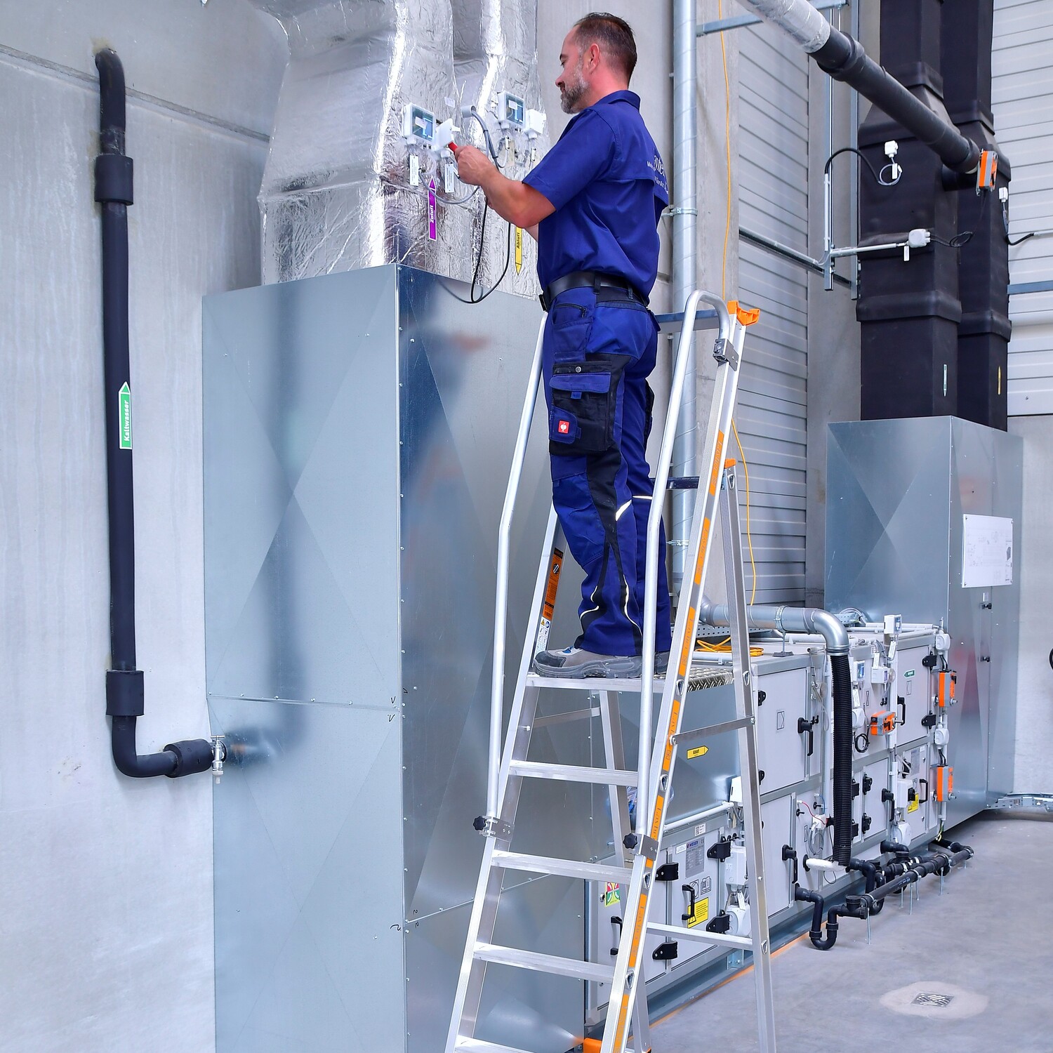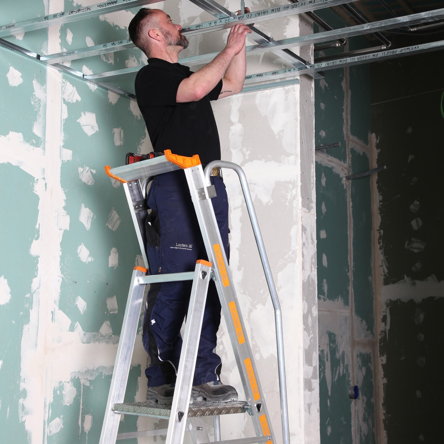 Layher Plattformleiter TOPIC 1074 – Komfort & Sicherheit für längere Arbeiten