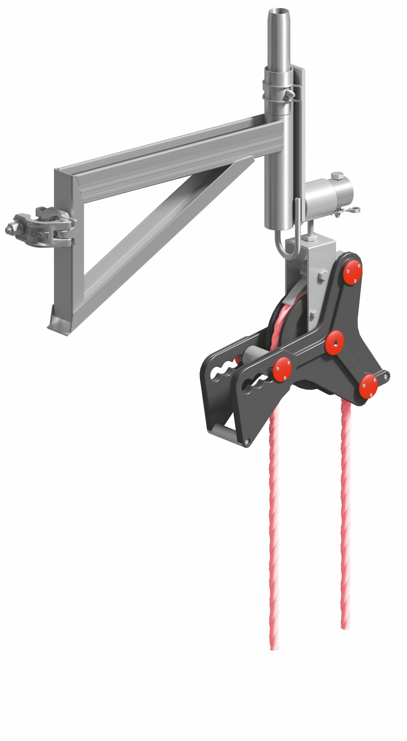 Der Layher Konsoladapter das Aufzugsrad und Seil sind ein systemfreies Zubehör, das sich für Fassadengerüste und Modulgerüste eignet. Er kommt insbesondere beim Layher Blitz-Gerüst und Layher Allround-Gerüst zum Einsatz.