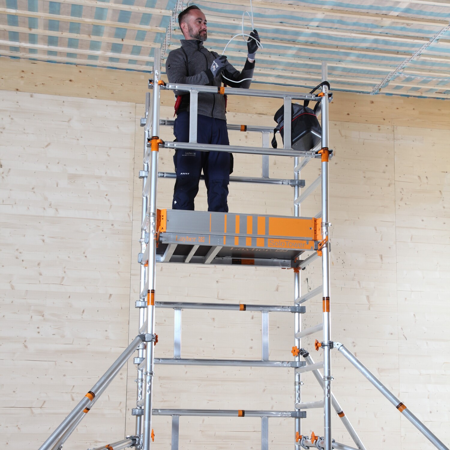 Der Layher SoloTower P2 SAFETYPLUS ist das innovative Fahrgerüstsystem, das speziell für den Ein-Personen-Aufbau entwickelt wurde – schnell, effizient und absolut sicher. Mit einer maximalen Arbeitshöhe von 6,15 m lässt sich das Gerüst von nur einer Person mühelos transportieren, montieren und bedienen. Der SoloTower ist die perfekte Lösung für Handwerksbetriebe, Instandhaltungen oder Installationsarbeiten – ganz ohne zusätzlichen Personalaufwand.
