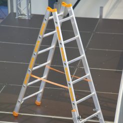 Die traditionelle Stehleiter der Serie TOPIC 1039 ist die klassische Ausführung der Stehleiter mit rutschfesten Sprossen. Kunststoffummantelte Stahlscharniere, Verstärkungswinkel und reißfeste Polyester-Gurtbänder für Kraftübertragungen bis 3 kN als Spreizsicherung sind besondere Qualitätsmerkmale.