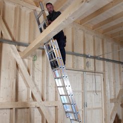 ✔ Auszugsleiter (Oberleiter) hinter der Unterleiter → Sicheres, gleichmäßiges Auf- & Absteigen, reduzierte Stolpergefahr