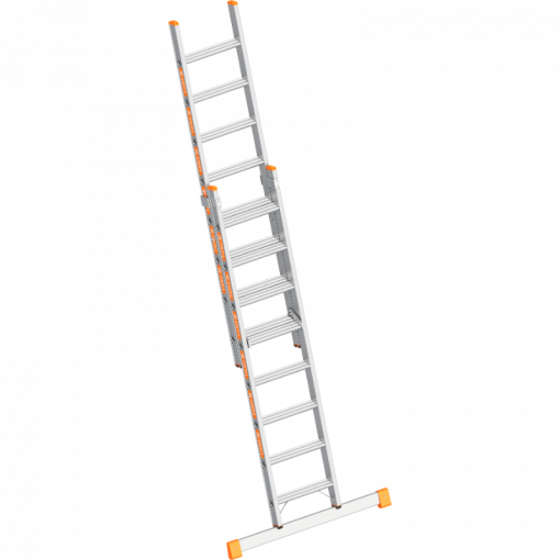 Die Stufenschiebeleiter TOPIC 1032 überzeugt durch ihr verwindungssteifes Holmprofil, das hohe Belastungen bei geringem Gewicht ermöglicht. Sie entspricht der DIN EN 131-1 und verfügt über eine 1130 mm breite Traverse zur Basisverbreiterung für höchste Standsicherheit.