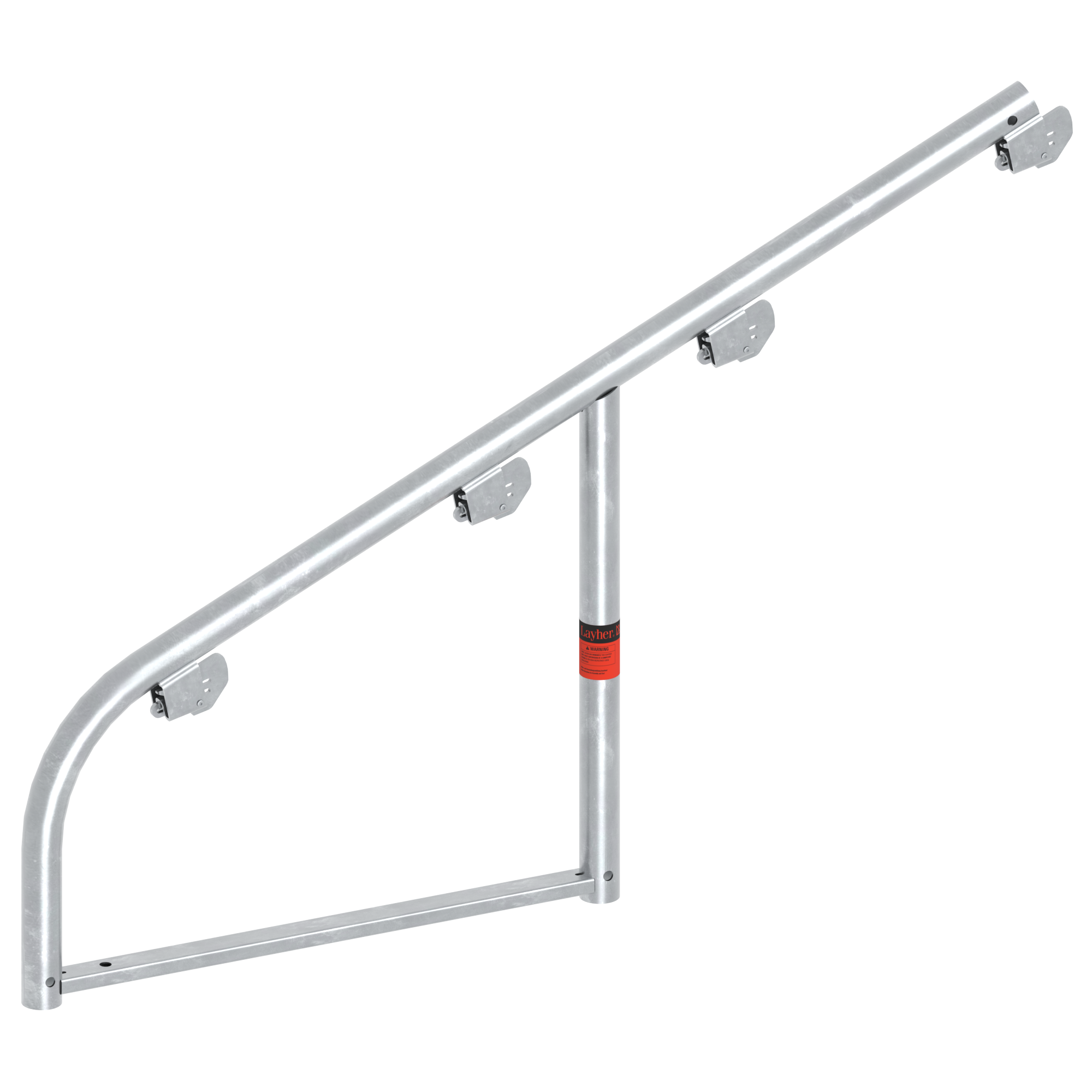 Beim Uni Wetterschutzträger handelt es sich um ein einteiliges Ergänzungsbauteil zum Blitz Gerüst, das einfach auf den obersten Blitz Stellrahmen LW gesteckt und mit Fallsteckern oder Rohrklappsteckern gesichert wird. Dies ist ohne großen Aufwand möglich – falls erforderlich auch nachträglich am fertigen Fassadengerüst. Durch die fünf integrierten Geländerkästchen können Blitz- Geländer oder Doppelgeländer als Planenunterstützung verwendet werden. Eine Sonderlösung ist nicht erforderlich. Gerüstplanen lassen sich problemlos mit Einmalbindern befestigen. Als Montageunterstützung dient eine temporär angebrachte Konsollage. Durch die Bauform und die Kombination mit Innenkonsolen steht der Uni Wetterschutzträger über Dachvorsprünge über.